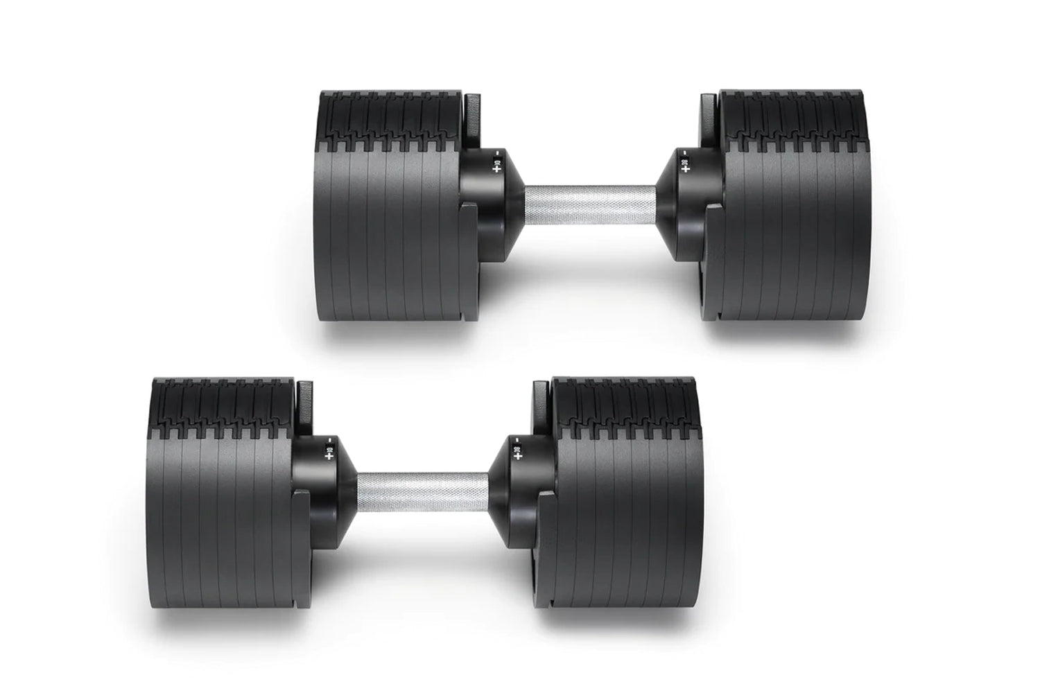Unlike cage-style adjustables or pin-selector systems, the patented twist-lock mechanism offers natural balance and instant weight changes. Compact yet powerful, the 80 lb set is the sweet spot for most lifters, providing enough range for strength gains while maintaining a smaller footprint than the 100 lb model.
