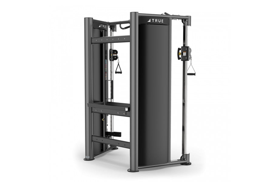 The premium commercial-quality TRUE XFT-900 Functional Trainer provides dozens of upper and lower body exercises, with unique vertical adjustment columns that rotate 360 degrees to allow unrestricted movement in multiple planes.