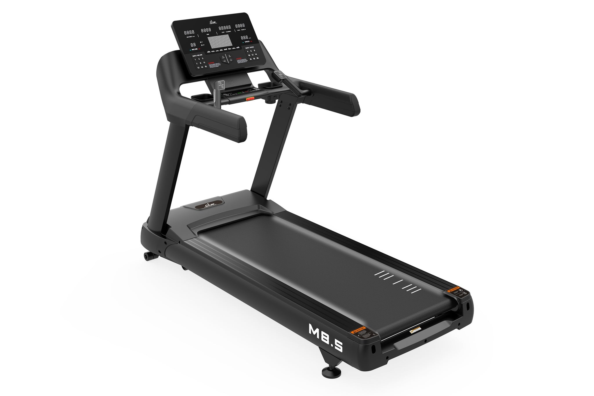 For intuitive training, resistance controls are seamlessly integrated into the handrails, allowing instant adjustments mid-workout.  At the center of it all is a large console hub built for modern training. The large LCD monitor keeps performance metrics clear and motivating, ensuring every session is as engaging as it is effective. With speeds up to 15 mph, a 15% incline, and a -3% decline, the Malibu 8.5T supports everything from intense interval climbs to real-world downhill simulationsâideal for advanced training and serious conditioning.