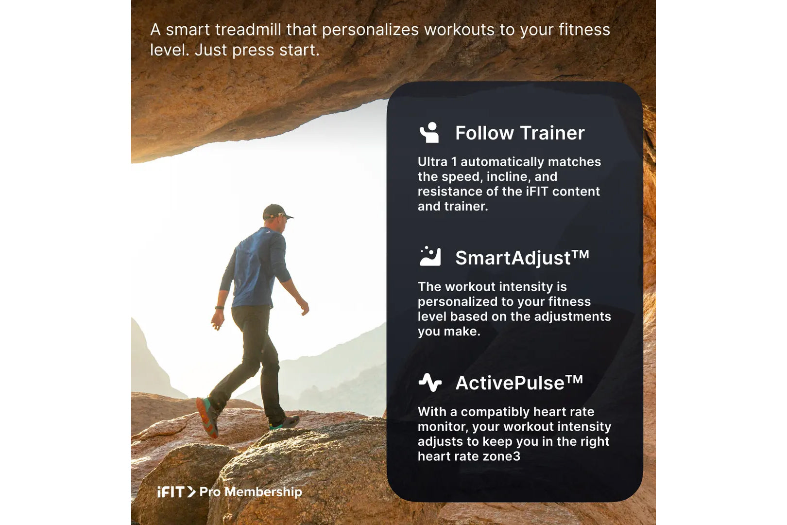 Ultra 3 is a smart treadmill that adjusts for you. Just press start and iFIT does the rest. With Follow Trainer, your treadmill will automatically follow the incline and speed of your iFIT Trainer.