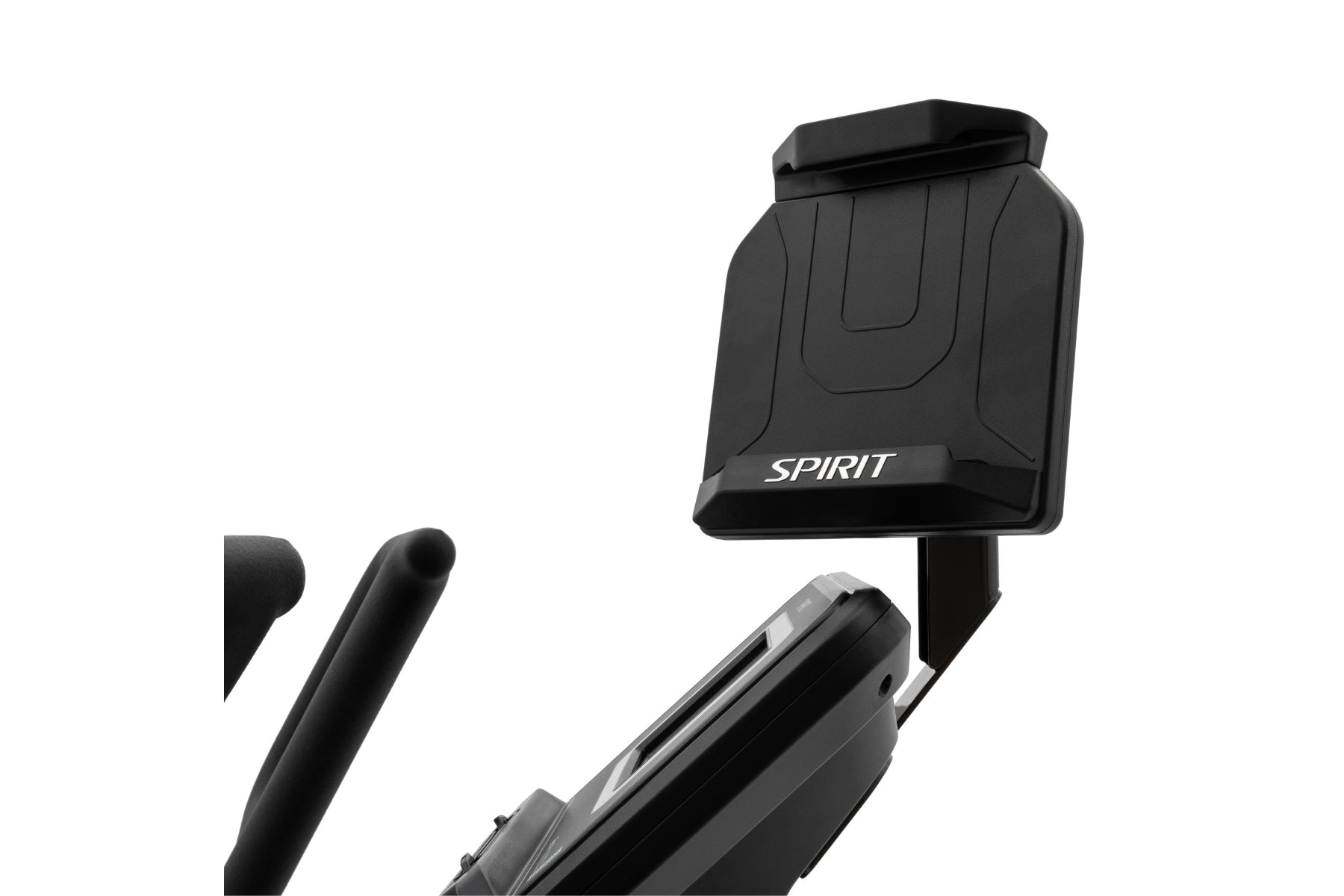 The removable above-console tablet holder makes it easy to keep your phone or tablet in view for entertainment or virtual fitness classes, and it allows for swivel and tilt adjustments without obscuring console workout data. *Tablet not included.