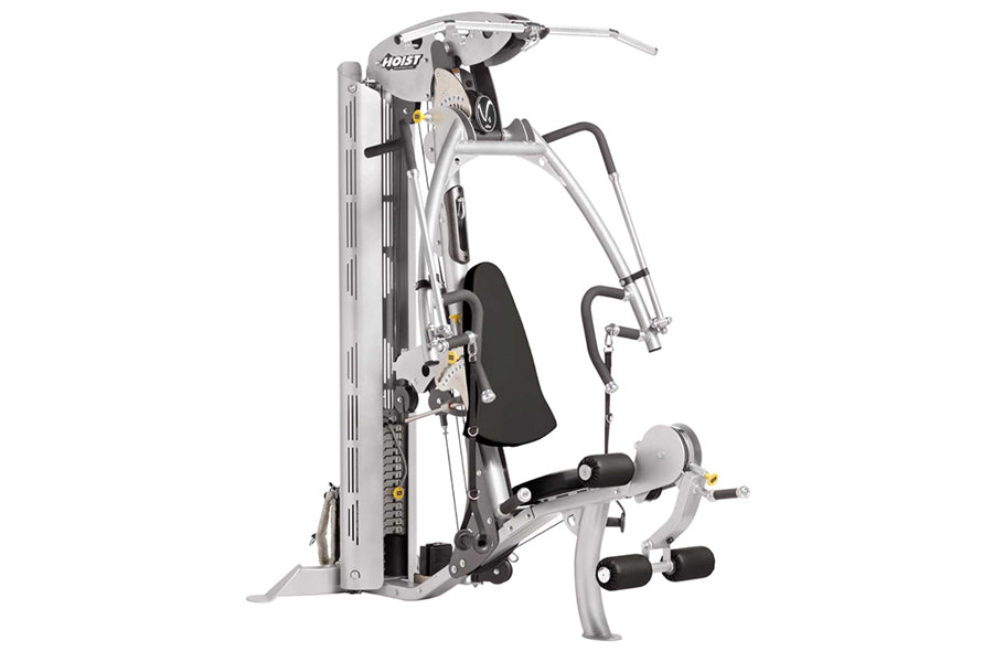 Engineered with the user in mind, the Hoist V4-Elite Home Gym w/ Leg Press included provides you with the flexibility to customize your home gym and achieve your personal fitness goals. Sleek and attractive, the compact design of the Hoist V4-Elite Home Gym w/ Leg Press requires minimal floor space, allowing you to move efficiently from one exercise to the next!