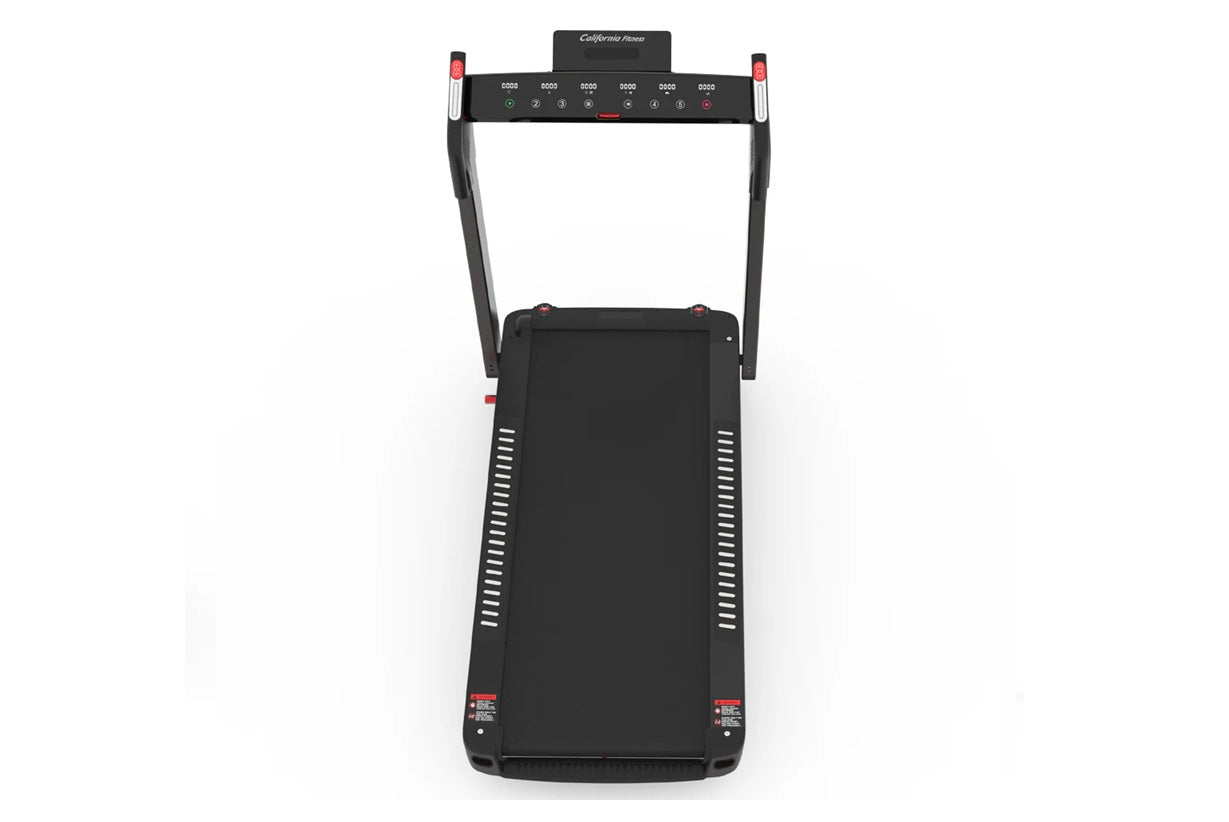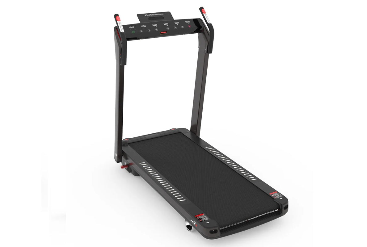 A sleek, foldable treadmill, the California Fitness M7 is perfect for an excellent workout at home—designed to save space without sacrificing performance. Its compact form tucks away effortlessly when not in use, making it ideal for any living space. Train your cardio quietly, safely, and efficiently. With a single click, you're ready to start your workout and move closer to your fitness goals.