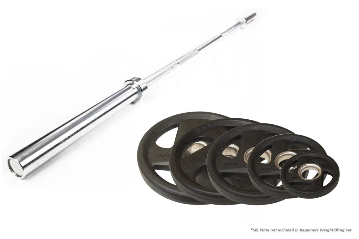 Introducing the Warrior Beginner's Weightlifting Package - the perfect choice for beginners venturing into the world of strength training and seeking a reliable and easy-to-use barbell - at a great low price! Our Beginner's Weightlifting Package includes our classic Olympic Chrome 7-Foot Barbell and a 230lb set of our Warrior Rubber Grip Olympic Weight Plates. Embark on your fitness journey with confidence and the Warrior Beginner's Weightlifting Package by your side. As you explore weightlifting and refine your technique, the Warrior Olympic Barbell and Rubber Grip Olympic Weight Plates will be your reliable partners, helping you build a solid foundation for your strength training endeavors. Embrace the excitement of weightlifting and take the first step towards a healthier, stronger you! Some shipping restrictions apply*.