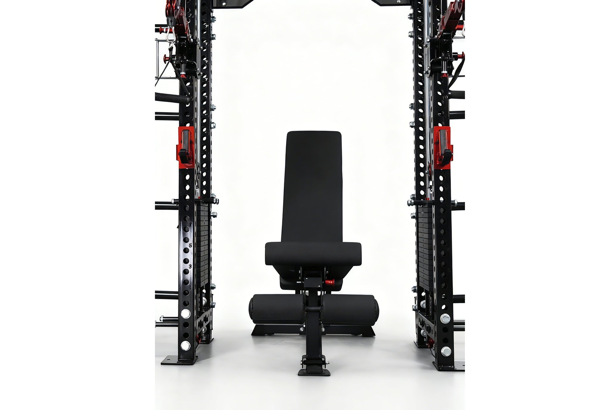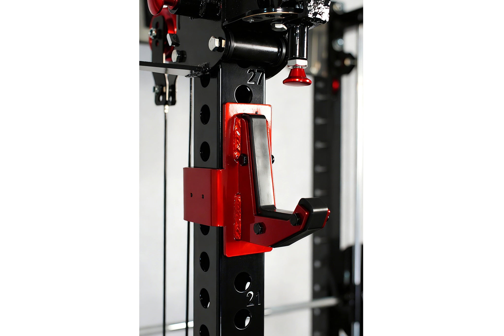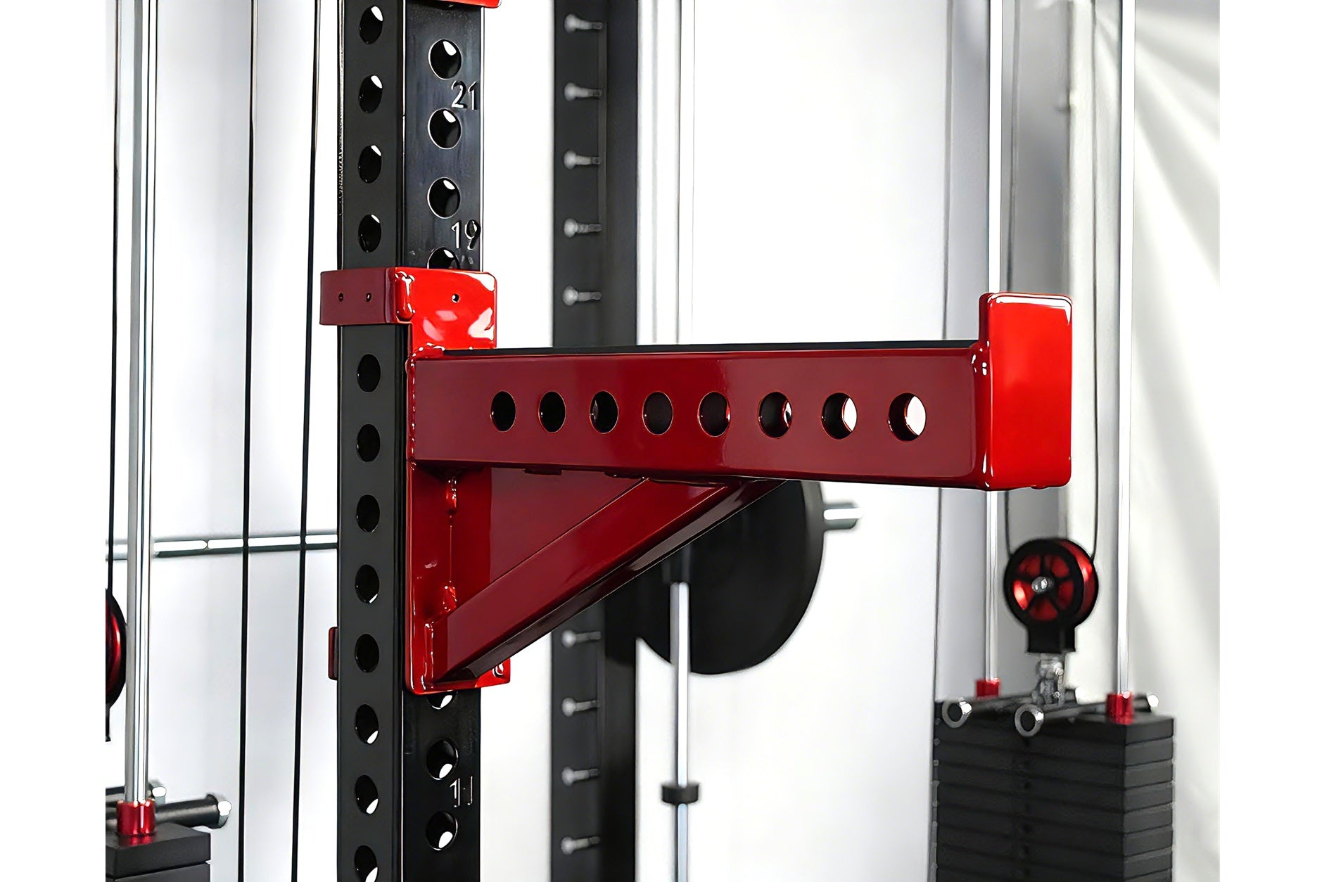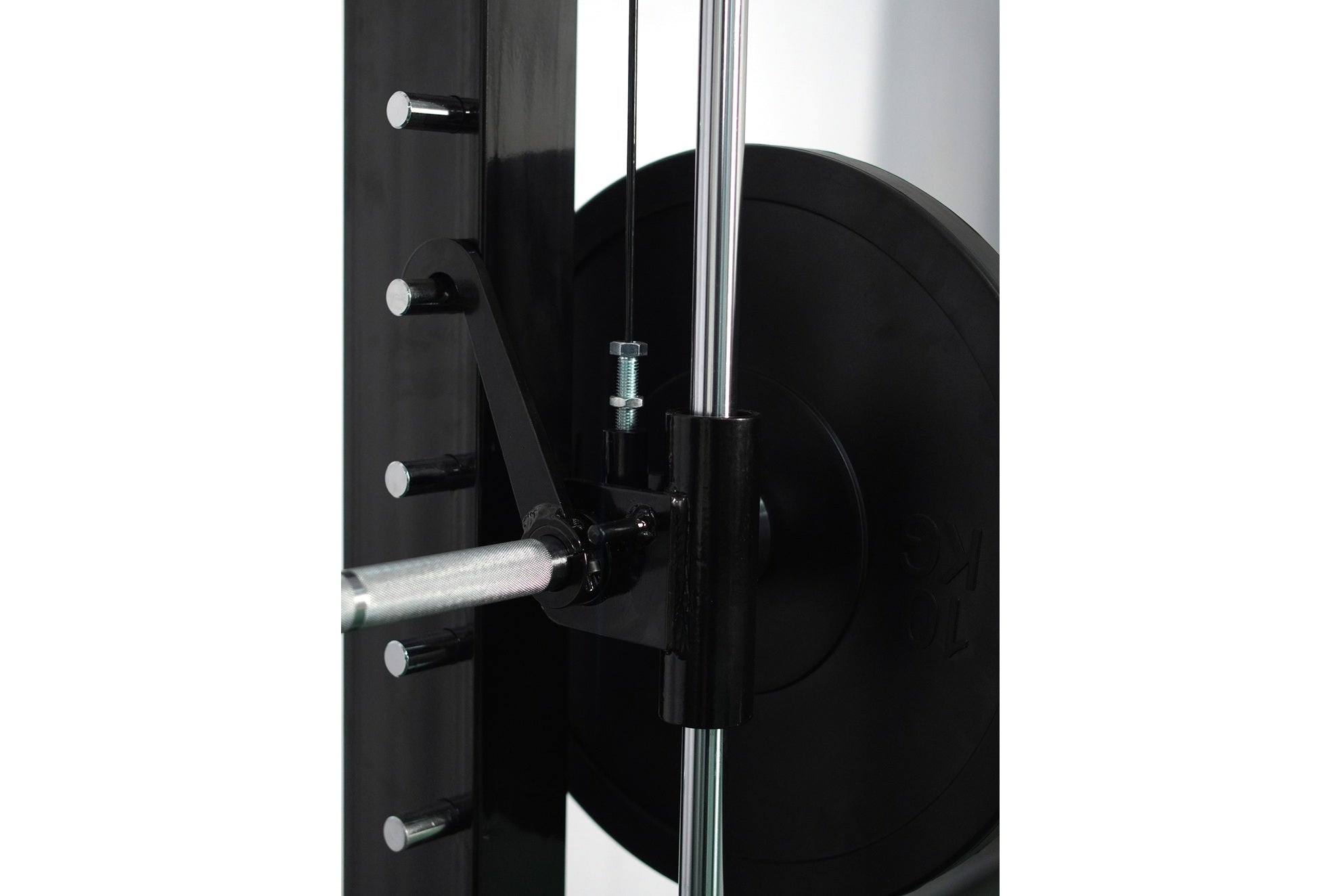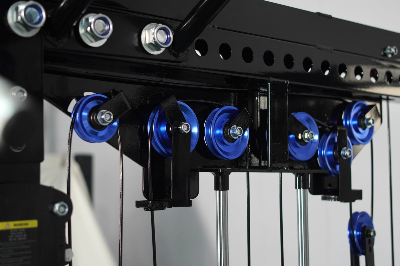 - Optional Counterbalance Smith Attachment w/ Needle Bearings: A Smith machine counterbalance attachment uses cables & pulleys to offset the natural weight of the Smith machine bar, creating a zero or near-zero starting weight for the bar. This feature reduces initial resistance and allows for smoother, lighter lifts, making the machine more accessible for all - hardcore lifters, beginners, people recovering from injuries, and those training with less resistance.