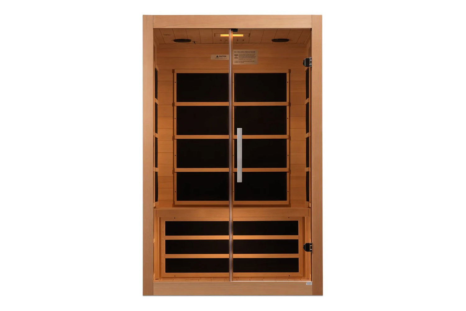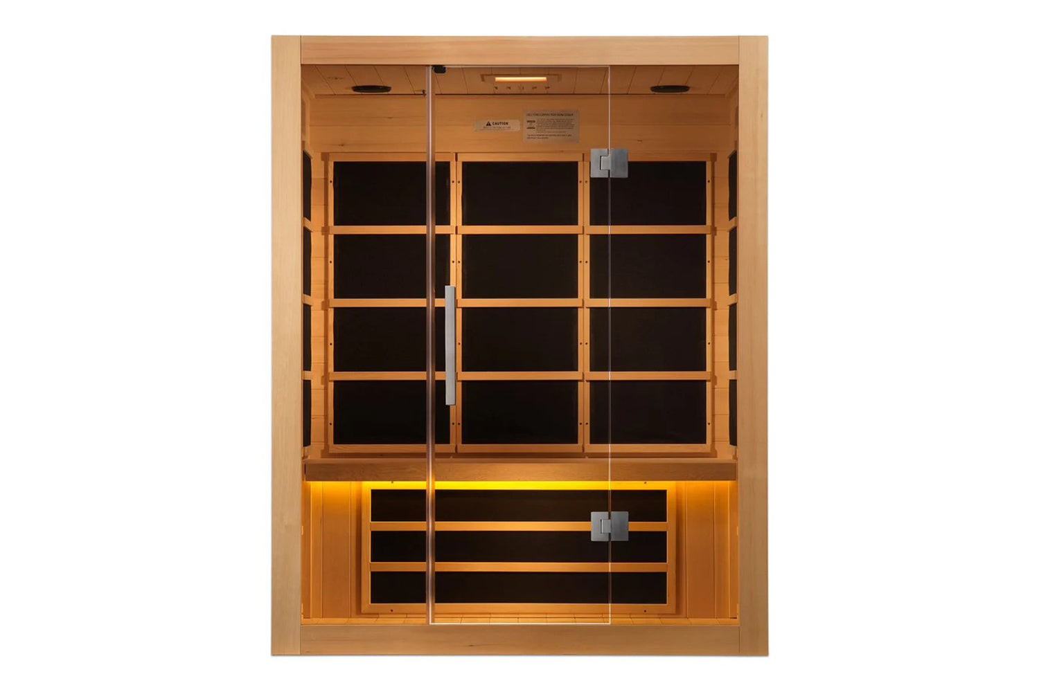 The Harmony Infrared 2 or 3 Person sauna is designed with extra-wide carbon fiber heating panels, hemlock lumber, and bronze privacy tempered glass. They also include features such as Bluetooth audio, color-changing lights, and an interior digital control panel. Enjoy the FAR infrared rays—akin to basking in the sun without the harmful UV rays. This sauna has near zero EMF, provide full-body surround heating, and fast heat-up times.