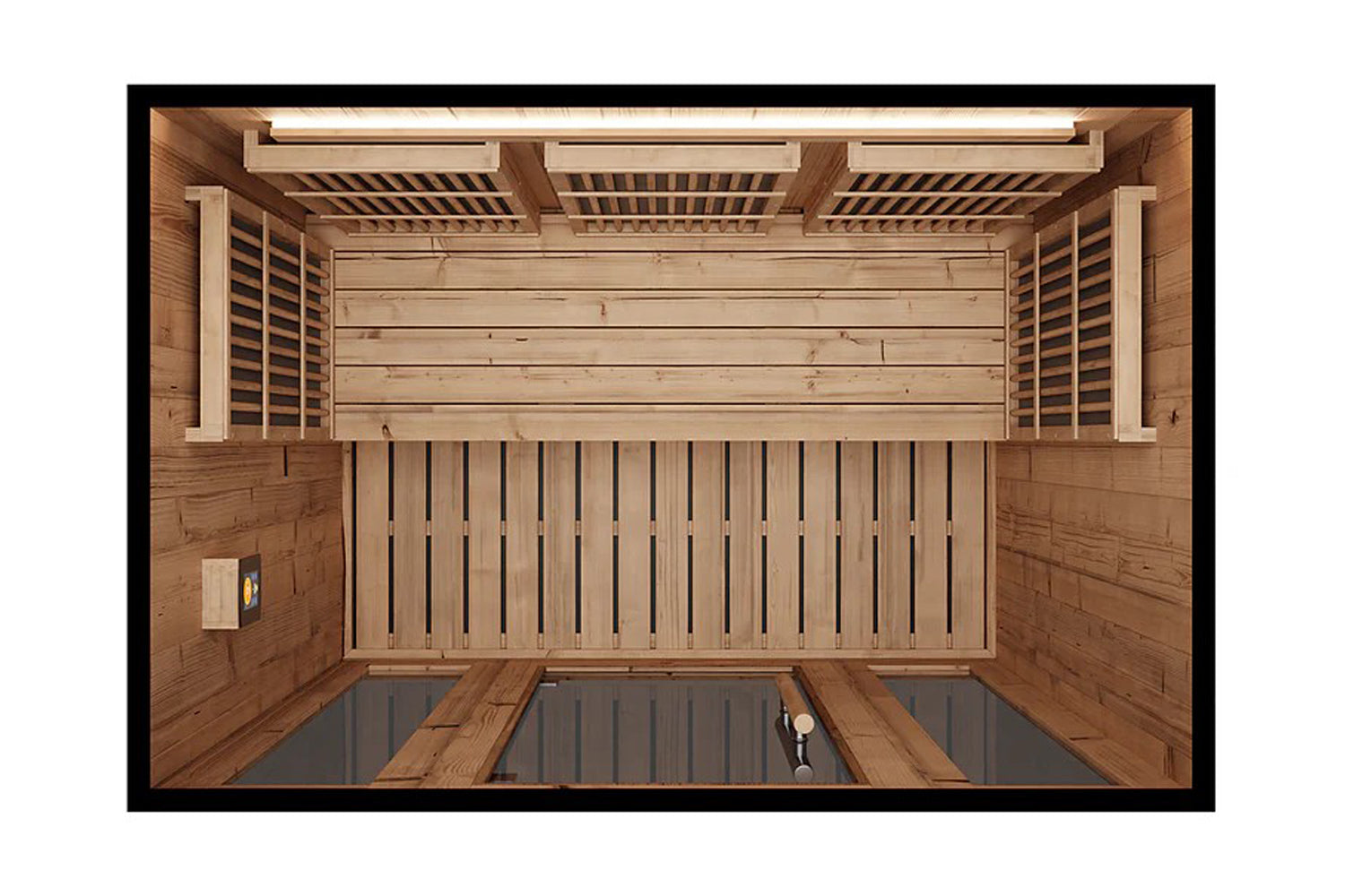 Every IR sauna includes an LED mood-lighting bar, allowing you to choose the atmosphere—whether a bold green or a calming soft pink—to enhance relaxation through proven color-therapy benefits.