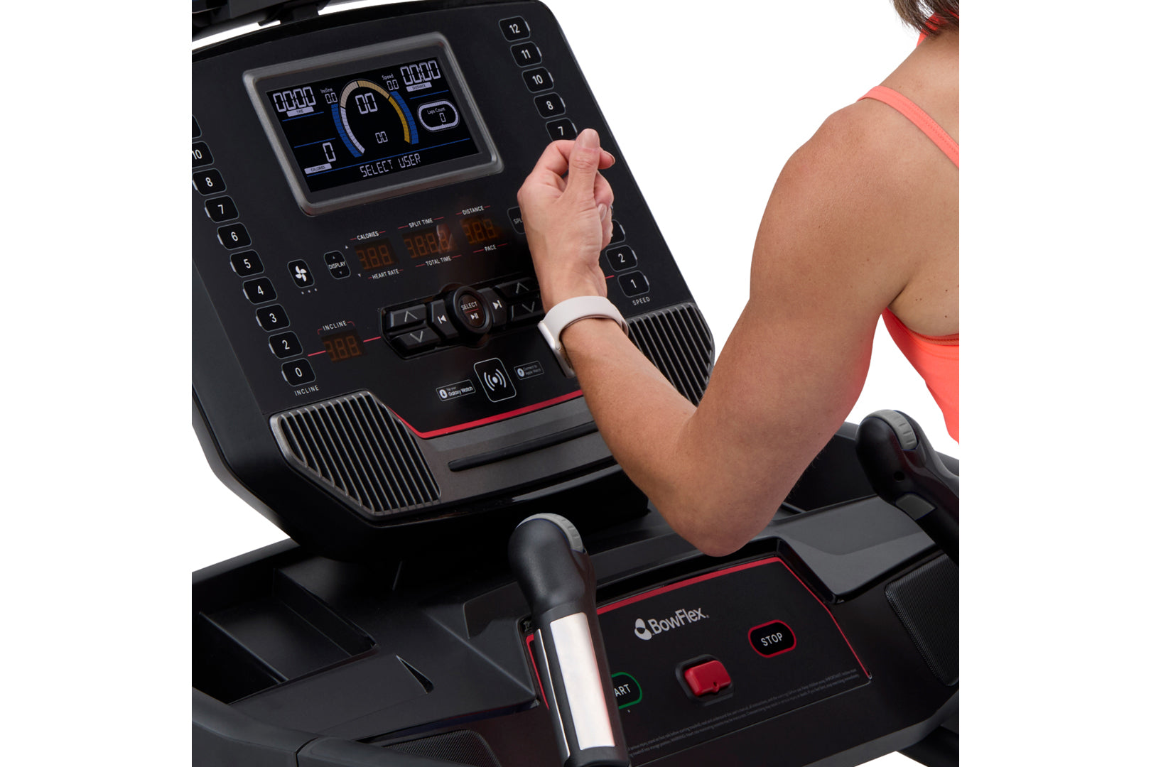 • Connect your Apple Watch for easy and accurate fitness tracking. Simply tap to connect Apple Watch to the BowFlex T9 Treadmill to sync important metrics, including calories, speed, distance, pace and time