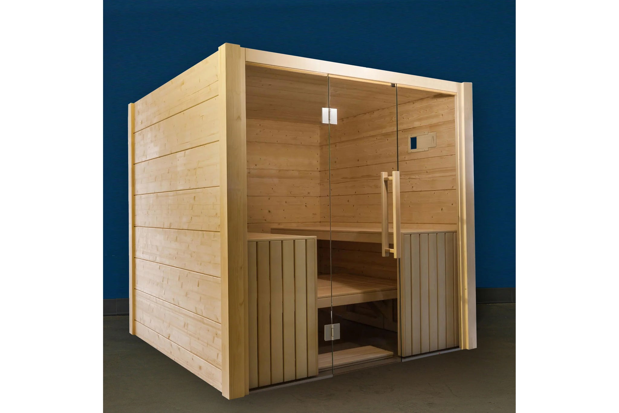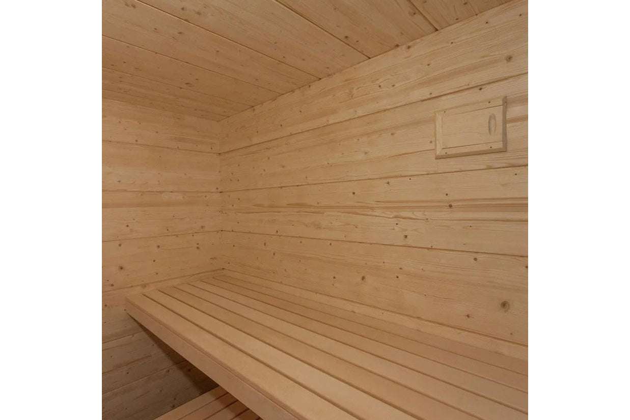 The Olympus Indoor Sauna is designed for elevated relaxation and effortless entertaining—comfortably seating 5–6 people, with room for up to 8. Its extra-wide, multi-level benches offer flexible seating and lounging options, perfect for solo sessions or social gatherings. Crafted from premium Nordic Spruce and featuring a full-glass front, Olympus delivers a modern, airy feel that transforms any space into a wellness retreat.
