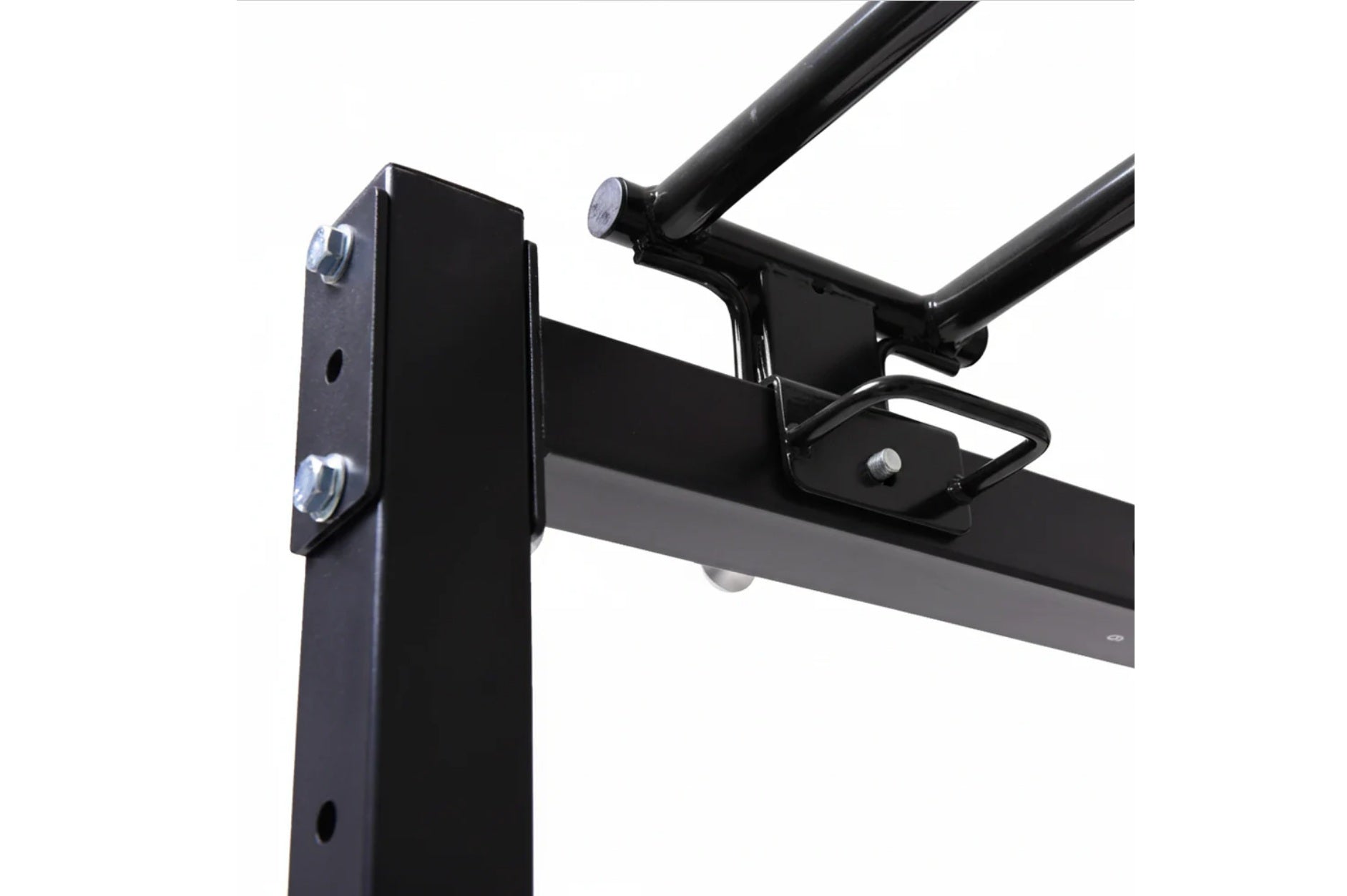 The Warrior Folding Power Rack features a multi-grip pull-out bar that adds versatility and functionality to your workout routine. This innovative bar offers multiple grip positions, allowing you to target different muscle groups and vary your exercises with ease. When you're ready to train, the bar effortlessly folds out, providing a sturdy and reliable platform for your exercises. After your workout, it neatly folds back in, maintaining the weight rack's compact and space-saving profile.