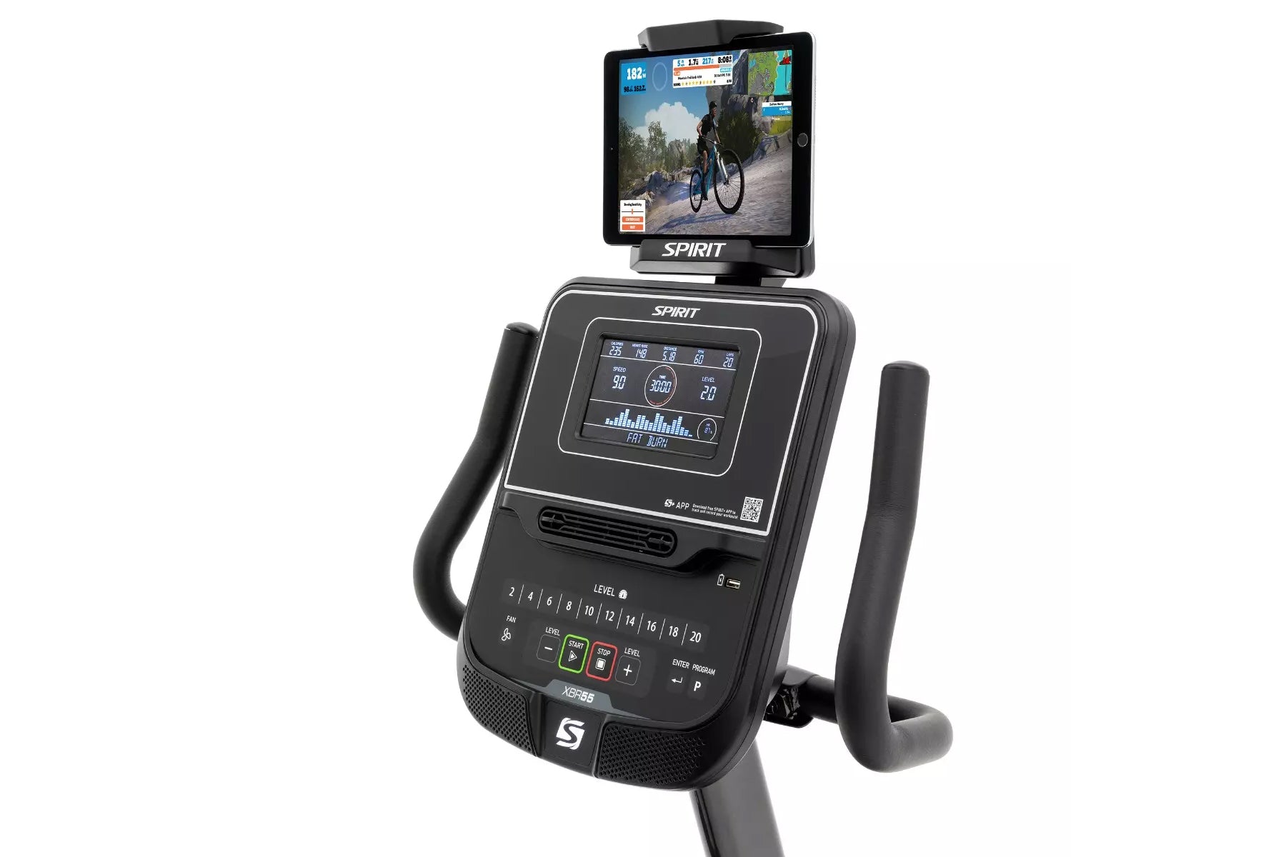The removable above-console tablet holder makes it easy to keep your phone or tablet in view for entertainment or virtual fitness classes, and it allows for swivel and tilt adjustments without obscuring console workout data.
