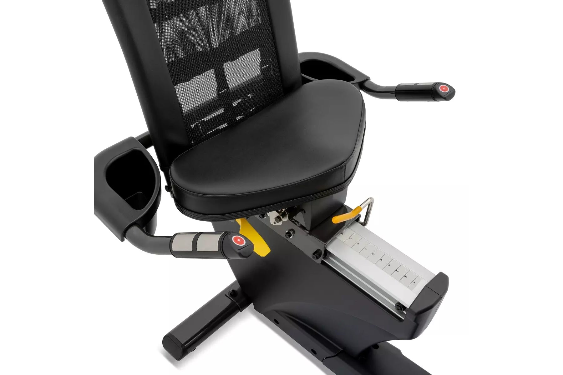 With a 24 lb flywheel and 20 levels of magnetic resistance, you will stay challenged during every workout session. Built-in Bluetooth FTMS lets you connect to apps like Zwift and Kinomap, your Bluetooth headphones, or a wireless heart rate monitor (Bluetooth or 5KHz, sold separately). Plus, our new removable swivel-tilt tablet holder makes it easy to keep your phone or tablet in view for entertainment or virtual fitness classes, without obscuring console workout data. Easily adjust the large high-density foam seat (forwards/back) or recline for a more comfortable position. Oversized, cushioned quick latch foot pedals and ergonomic hand grips ensure comfort at all touch points so you can reach the next level.
