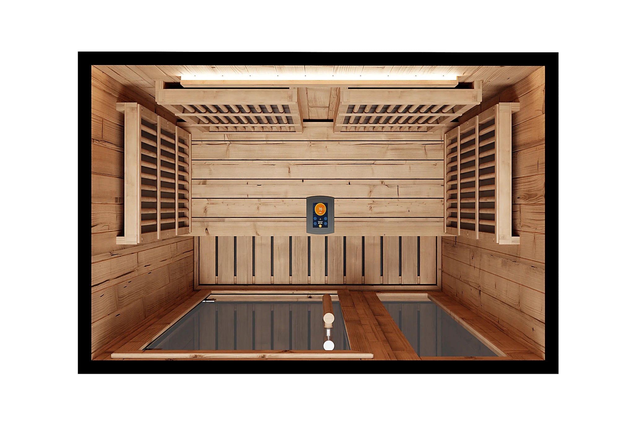 Every IR sauna includes an LED mood-lighting bar, allowing you to choose the atmosphere—whether a bold green or a calming soft pink—to enhance relaxation through proven color-therapy benefits.