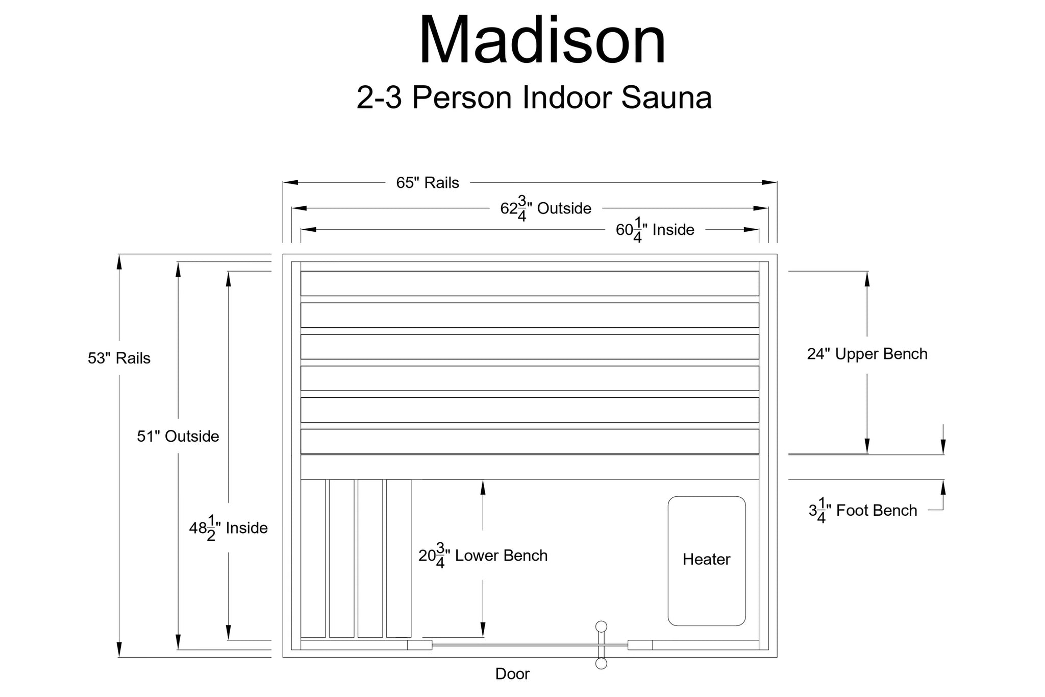 The Almost Heaven Madison 2-3 Person Indoor Sauna offers privacy and efficiency, seating up to three people. The Harvia 6kW heater heats to 180ºF in an hour or can be delayed up to eight hours. Two bench levels let you choose between intense or gentler heat. Designed to fit seamlessly into your space, it uses existing flooring and can be upgraded to a hybrid sauna with infrared panels.