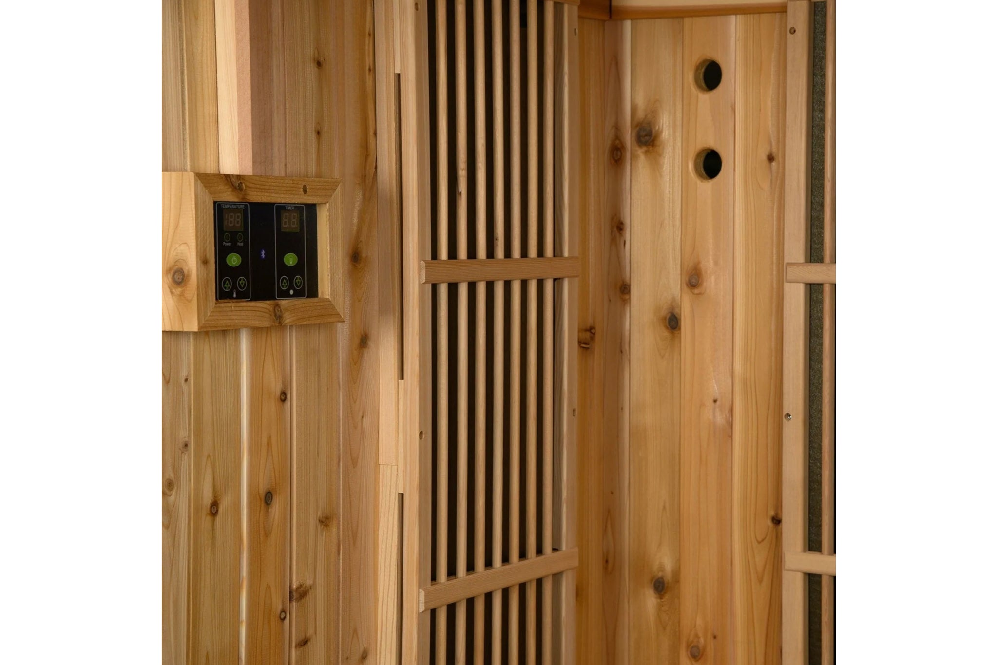 Every sauna includes a trusted Harvia heater. Choose between traditional dial controls or smart options to enjoy consistent, efficient warmth every time.