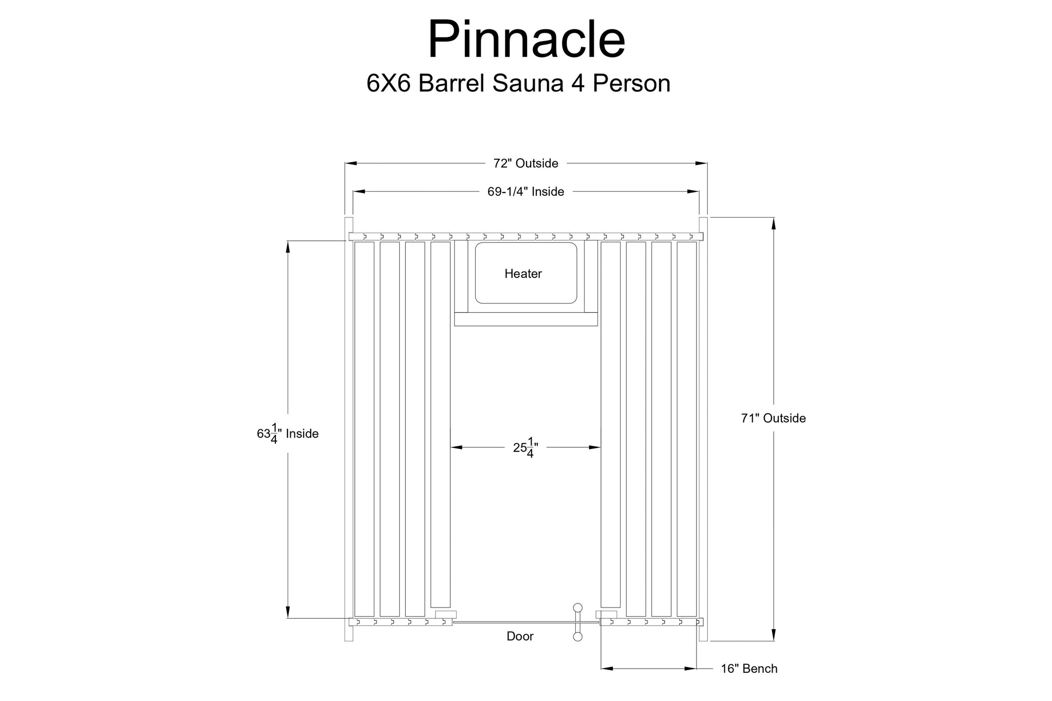 - Heater: You can upgrade the Pinnacle barrel sauna from the standard Harvia KIP60B heater to a number of options. Scroll up to see all of them!