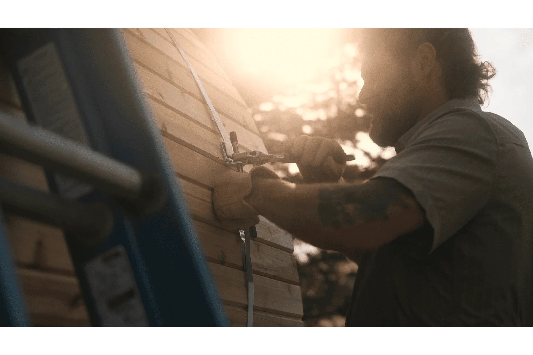 The Barrel Sauna is built with a ball-and-socket profile, secured by stainless steel bands for a tight, reliable seal that adapts as the wood naturally expands and contracts. It sits on durable polymer cradles, keeping it elevated and protected from ground moisture, ensuring longevity and stability.