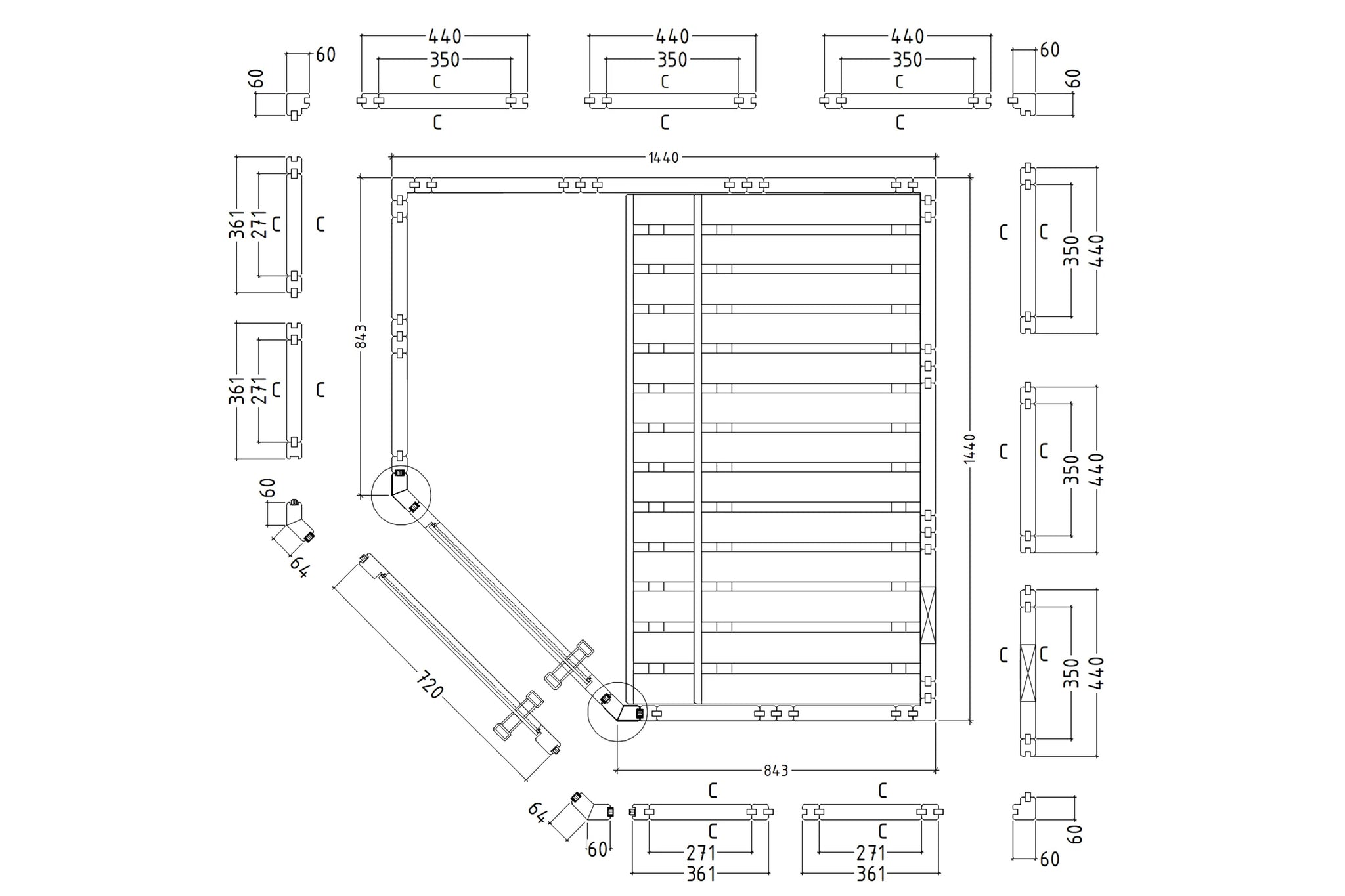 - Pre-assembled walls, benches, roof, and backrests for quick setup