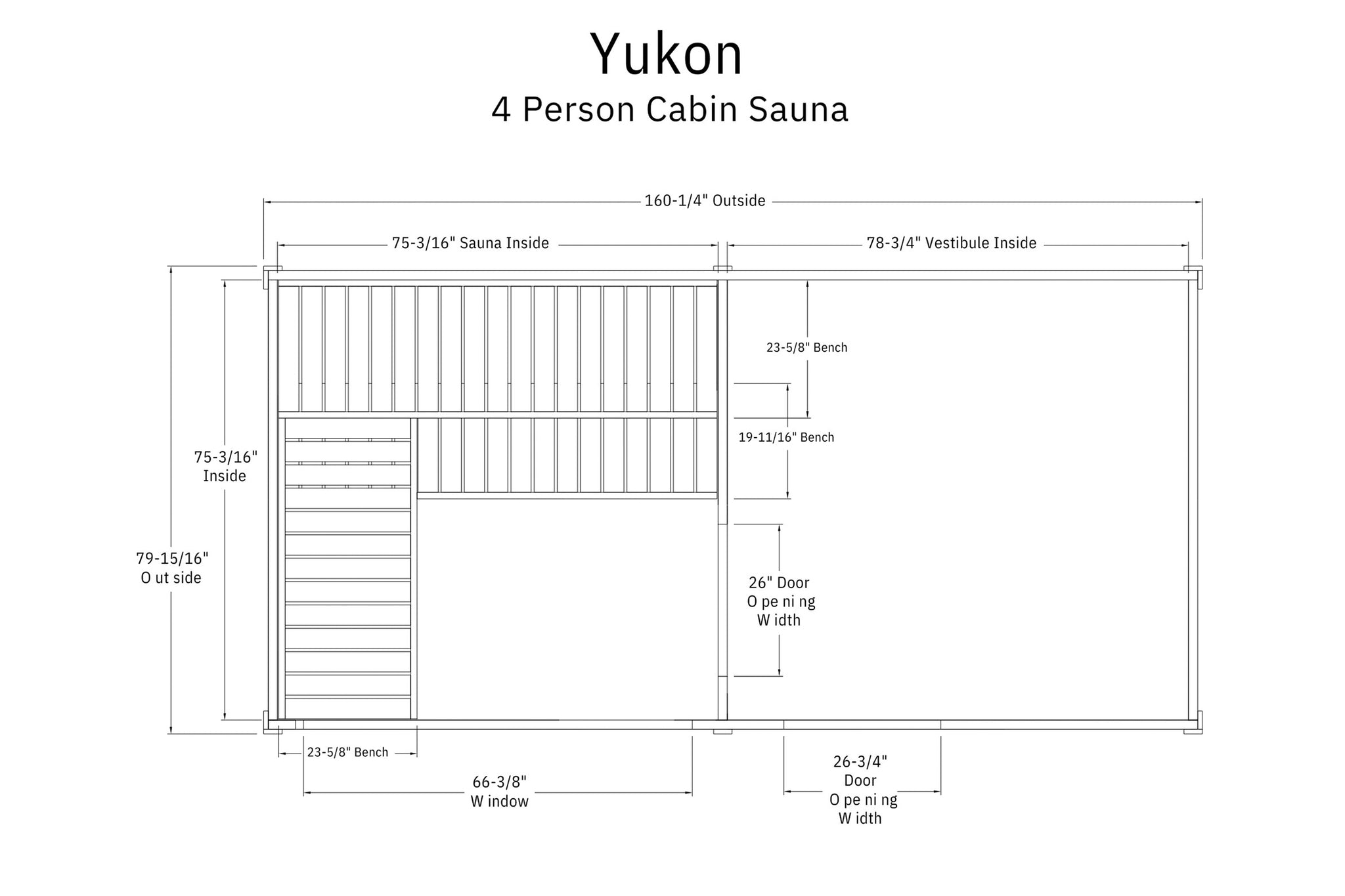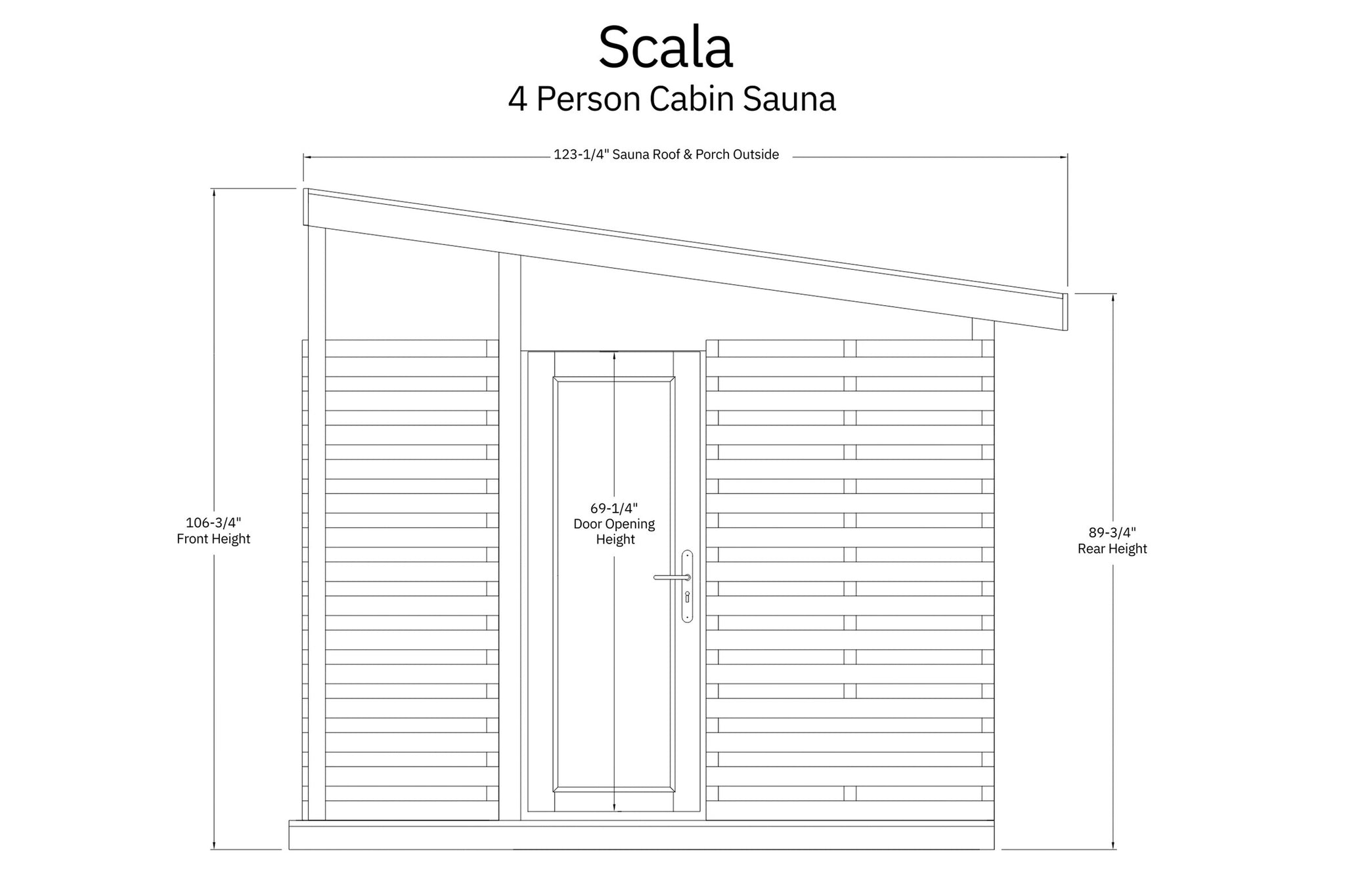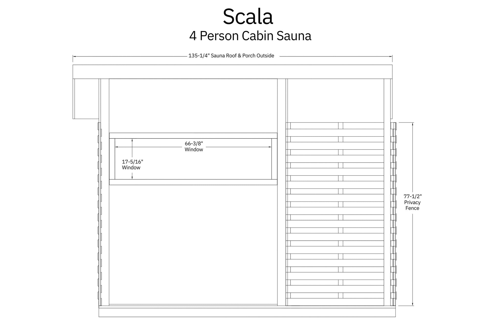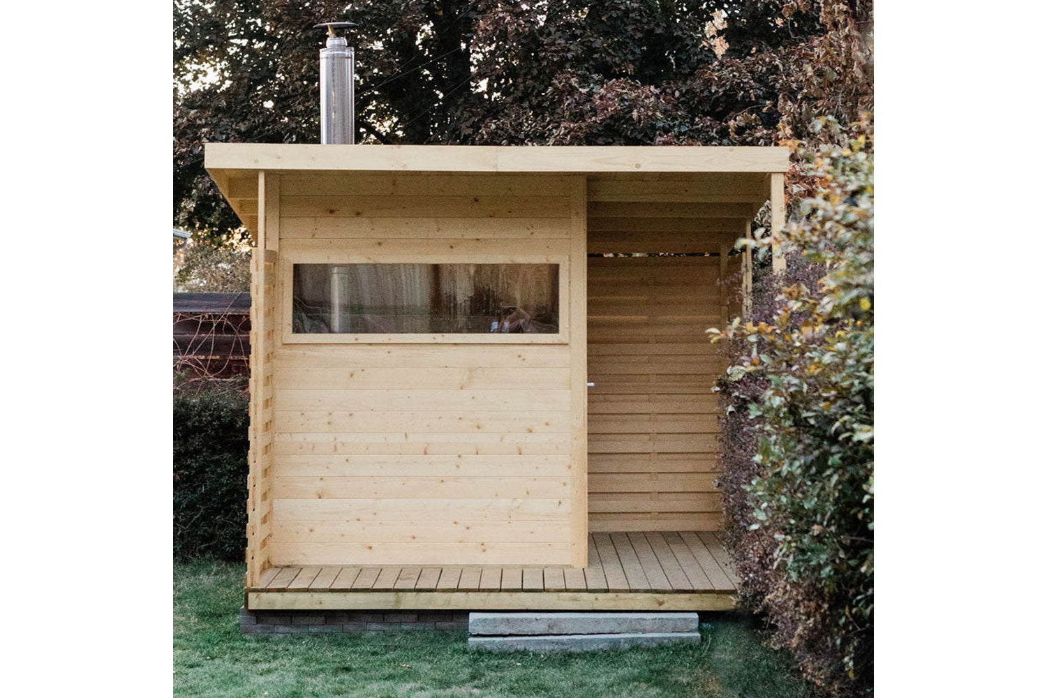 The Timberline Cabin Sauna combines modern design with an authentic sauna experience, perfect for any backyard retreat.  The medium Scala model features a wrap-around terrace and a panoramic window, creating an open, inviting space with a strong connection to the outdoors.  The larger Yukon model offers a spacious front-facing terrace, a wide panoramic window, and the added convenience of a private changing room — ideal for larger gatherings and extended sauna sessions.