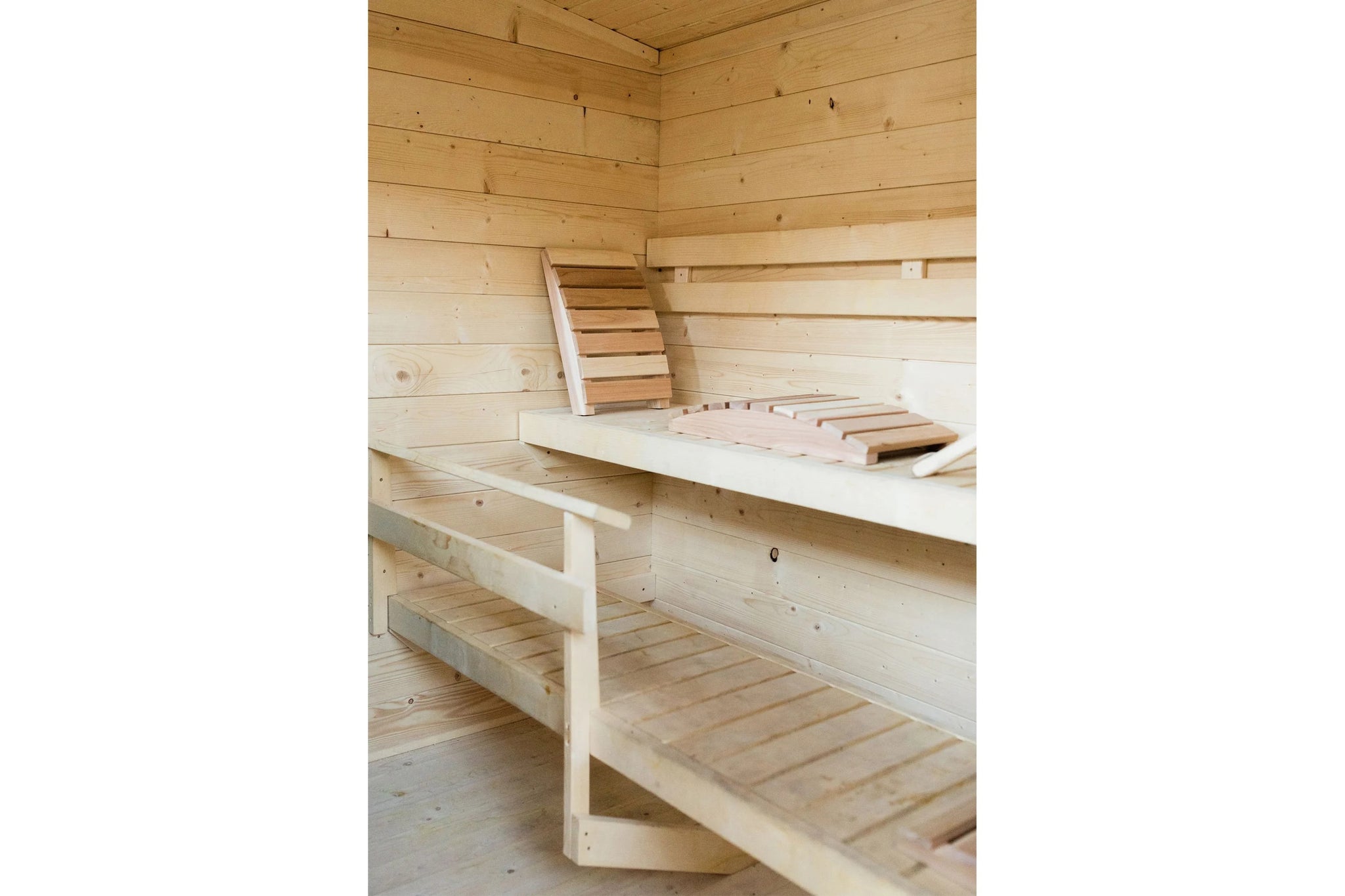 Experience customizable heat with multilevel sauna benching—tiered seating that lets you choose your ideal temperature, from gentle warmth below to intense heat above.