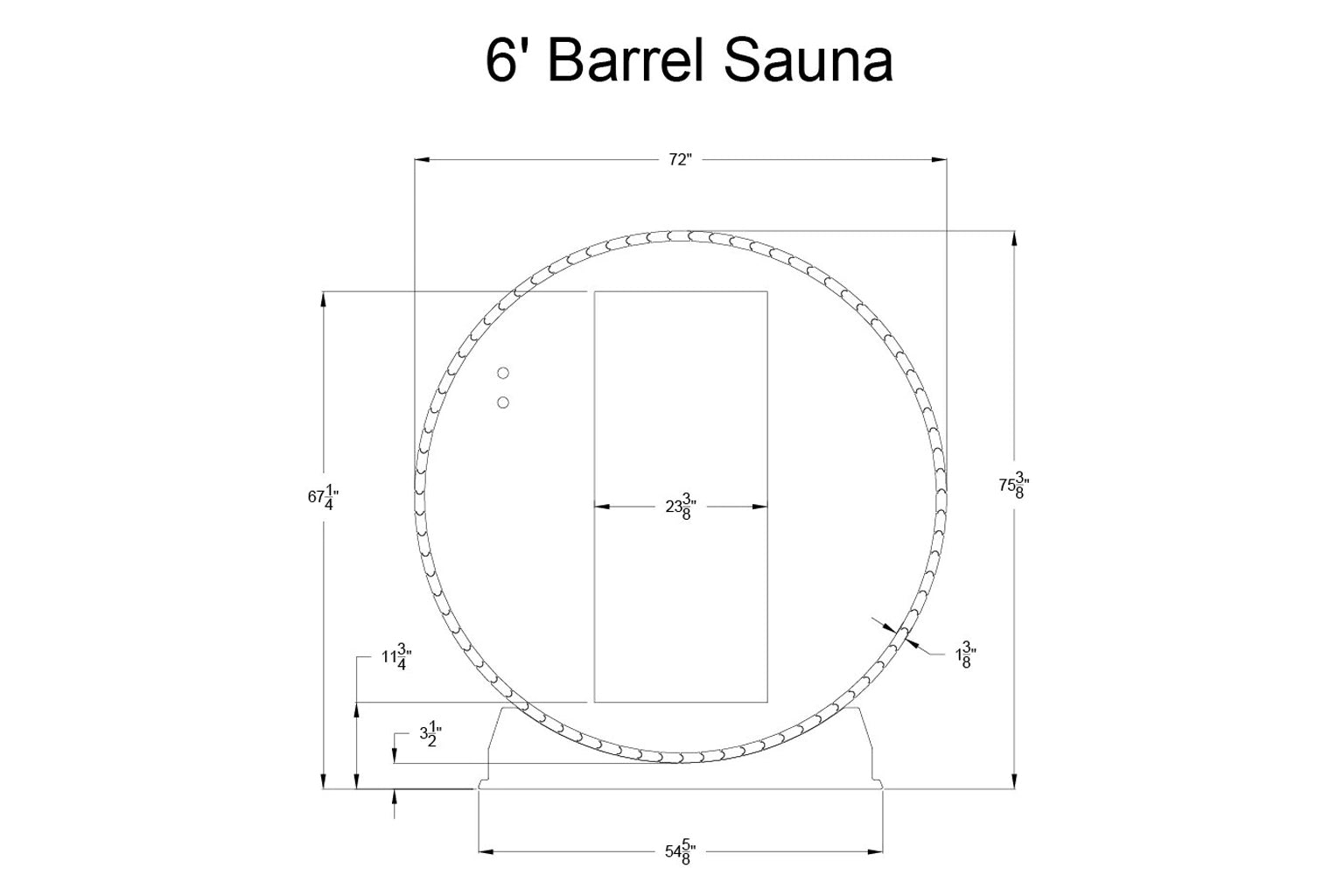 The 6' x 5' Vienna barrel sauna is designed for efficiency, comfortably fitting two people while reaching 180ºF with the Harvia 6kW electric heater. A one-foot canopy extends beyond the door, creating built-in exterior benches (69 ¼″W x 14 ⅝″D x 69 ¼″H) for cooling off or storing essentials. Inside, the 16″W x 39 ¼″L x 17″H benches provide a cozy yet comfortable space to relax.