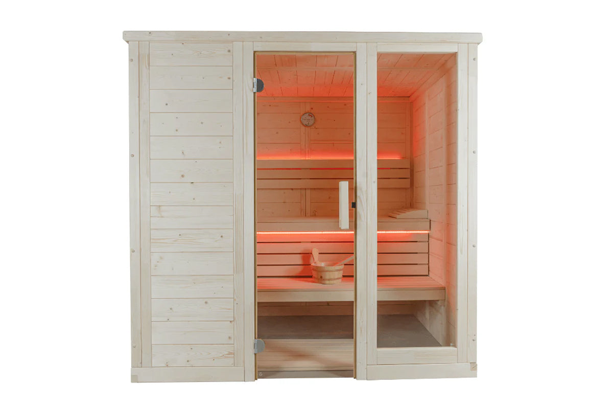 Designed with a sleek full glass door that enhances visibility and brings a modern, open feel to your sauna experience. Ample Natural Light