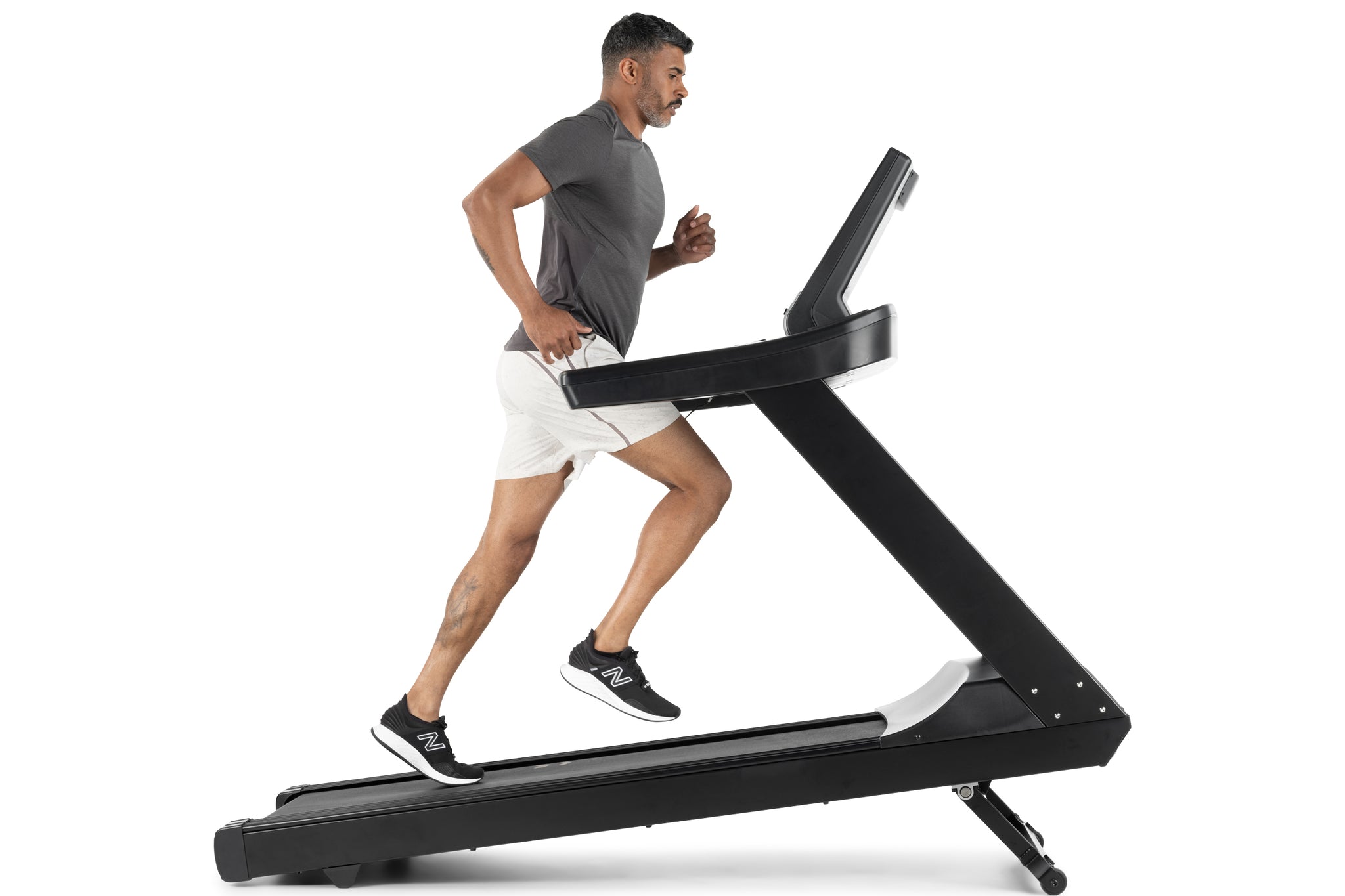 When synced to the user's smart device, the workout becomes interactive and automatically takes over the incline and speed of the treadmill.