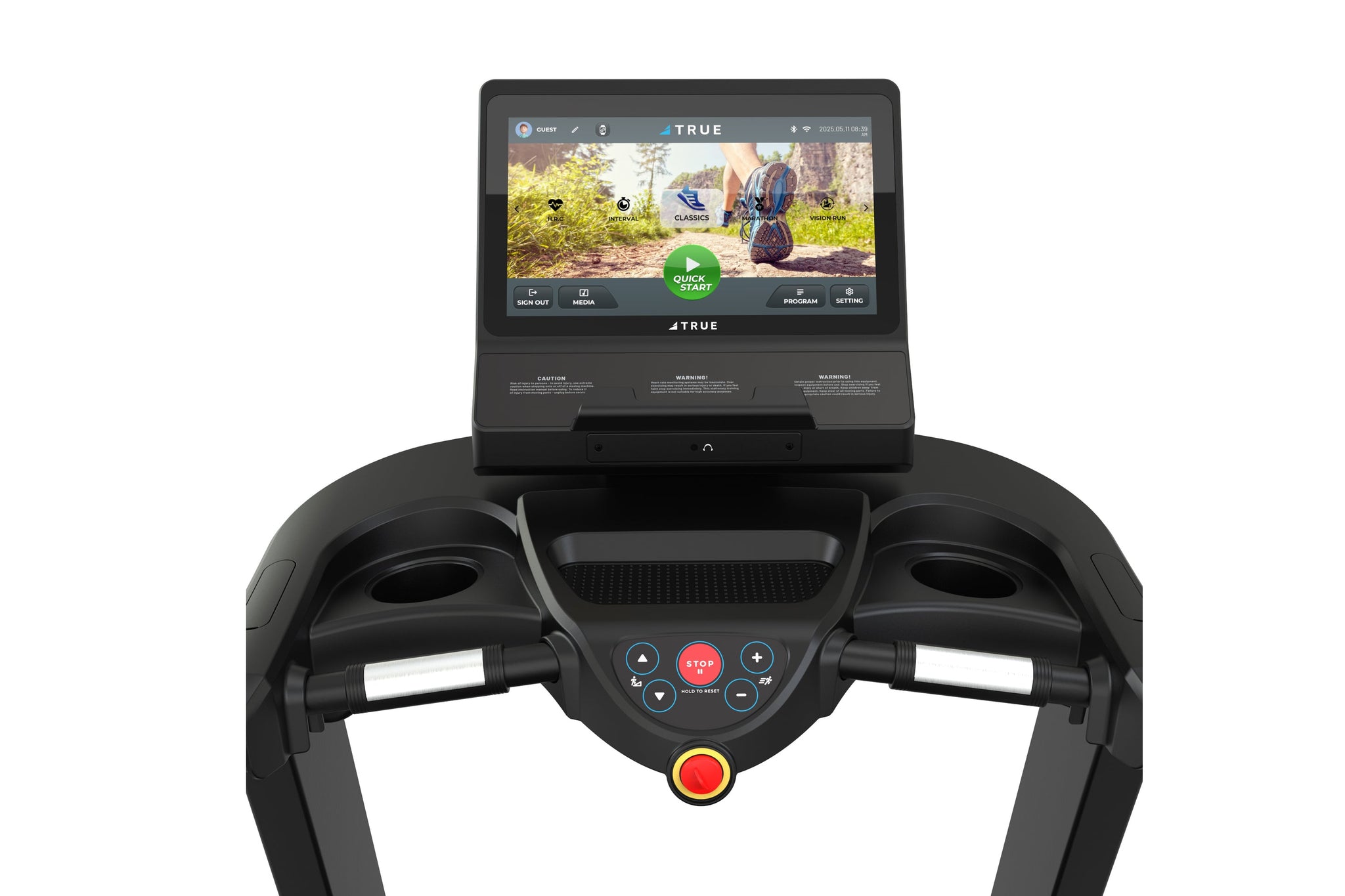 The 10″ touchscreen display features an intuitive home screen with up to 10 custom user profiles, built-in workouts, TRUE HRC® Cruise Control, wireless mirroring, and HDMI ports, plus more.