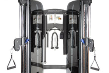 - Functional Trainer Accessories Include: Attached exercise book, DVD, 2 Single Handles, Long Bar with ball bearing ends, Sport Stick with bearings, Triceps Rope, Chin/Pushup Assist Strap, Ankle Cuff, 2 Chains, and Integrated Multi-grip Chin Bar.