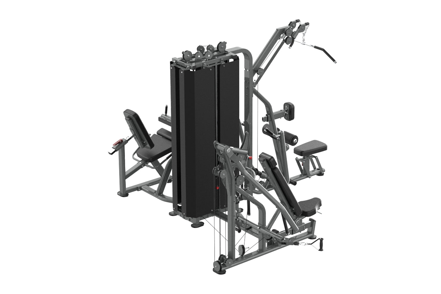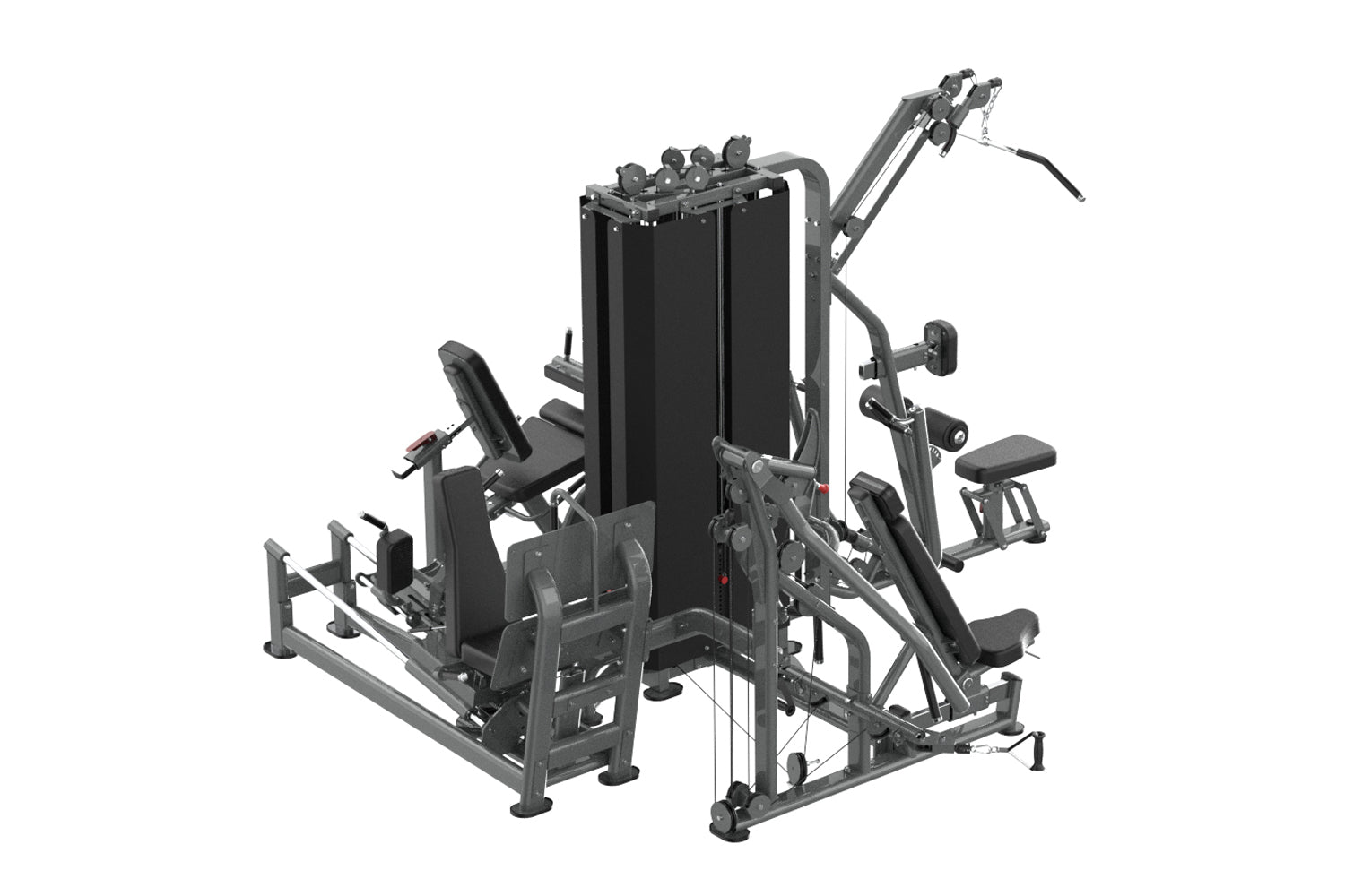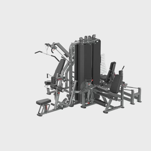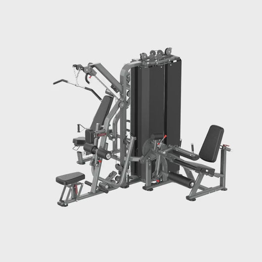 The Warrior Deluxe Commercial Series Multi-Station is a versatile and customizable home gym system designed to provide a full-body workout in one compact unit. It features three/four distinct workout stations to target multiple muscle groups, with swivel handles that allow natural, multi-directional movements for a smooth training experience. The machine includes full-length steel weight shrouds for safety and durability, along with integrated exercise placards to guide users through various workouts.