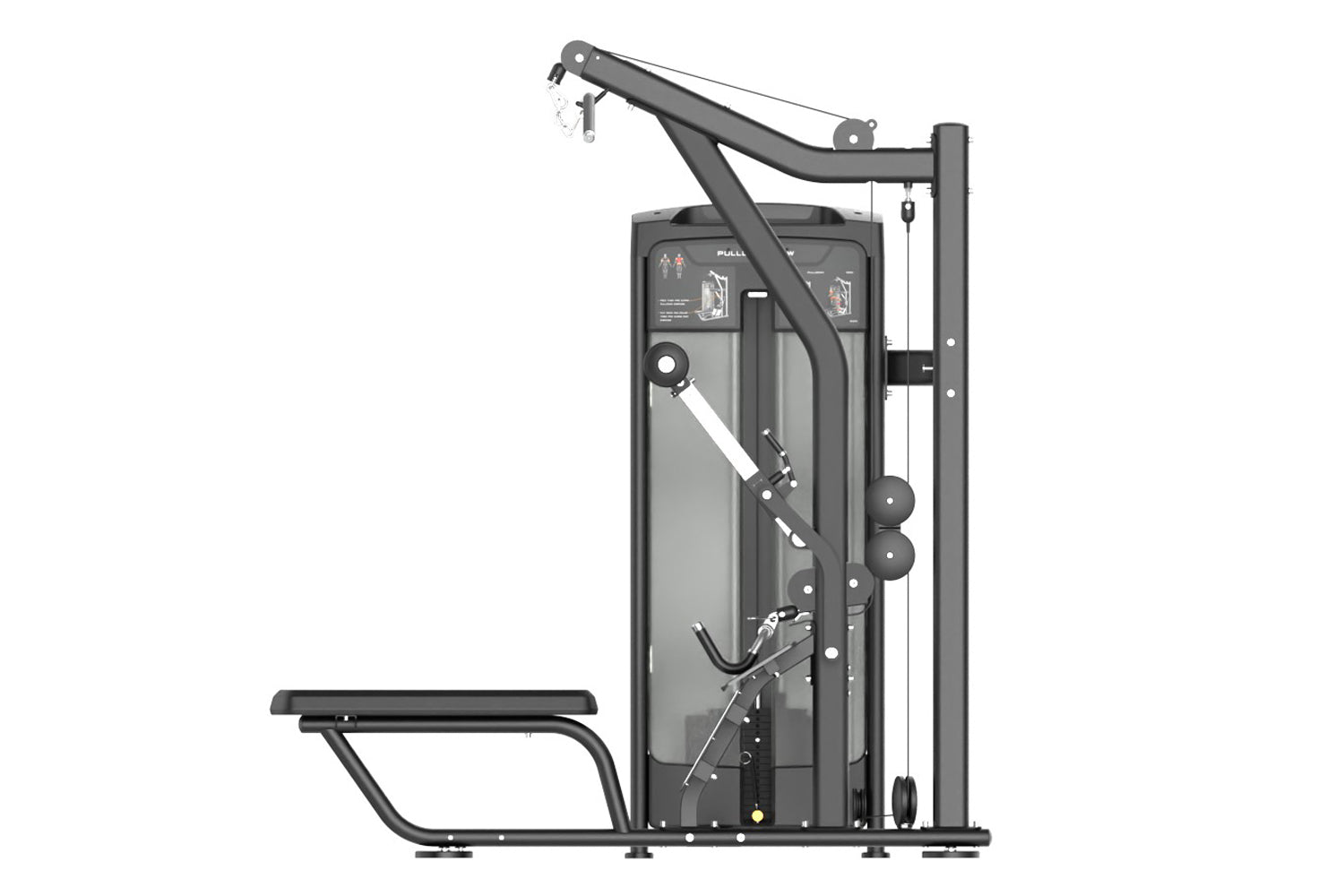 Combining lat pulldown and seated row capabilities in one machine, targeting both back width and thickness. The seated position pulley and seat pad placement are ingeniously designed to accommodate users of all heights, ensuring every rowing motion becomes more precise and efficient.