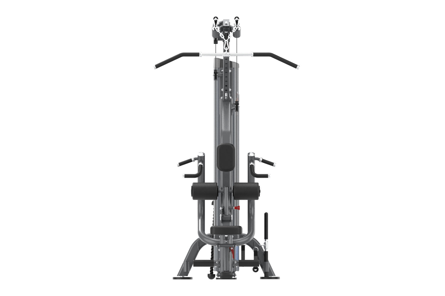 The machine comes equipped with four interchangeable handles, enabling multi-angle and variable-width grip options that support a full range of back training—from wide-grip lat engagement to deep contraction movements. The lat pulldown module includes a 13-position adjustable pulley height system, allowing users of different heights to find ideal grip points while maintaining a complete range of motion. The leg hold-down system offers four height settings plus a stowaway position, ensuring training stability and post-use convenience without interfering with the rowing motion.
